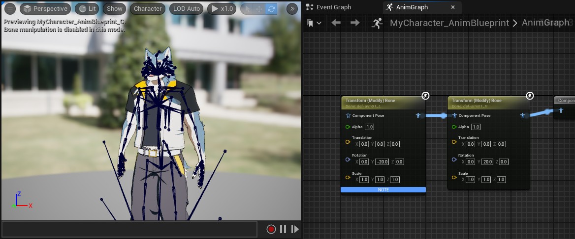 Once you compile the nodes at least once, you should see the model pose update in real time in the blueprint’s viewport.