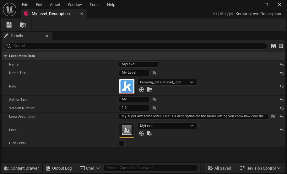 First we’re going to make the Level asset itself. However, I highly recommend copying one of the example Levels rather than making a new one from scratch.