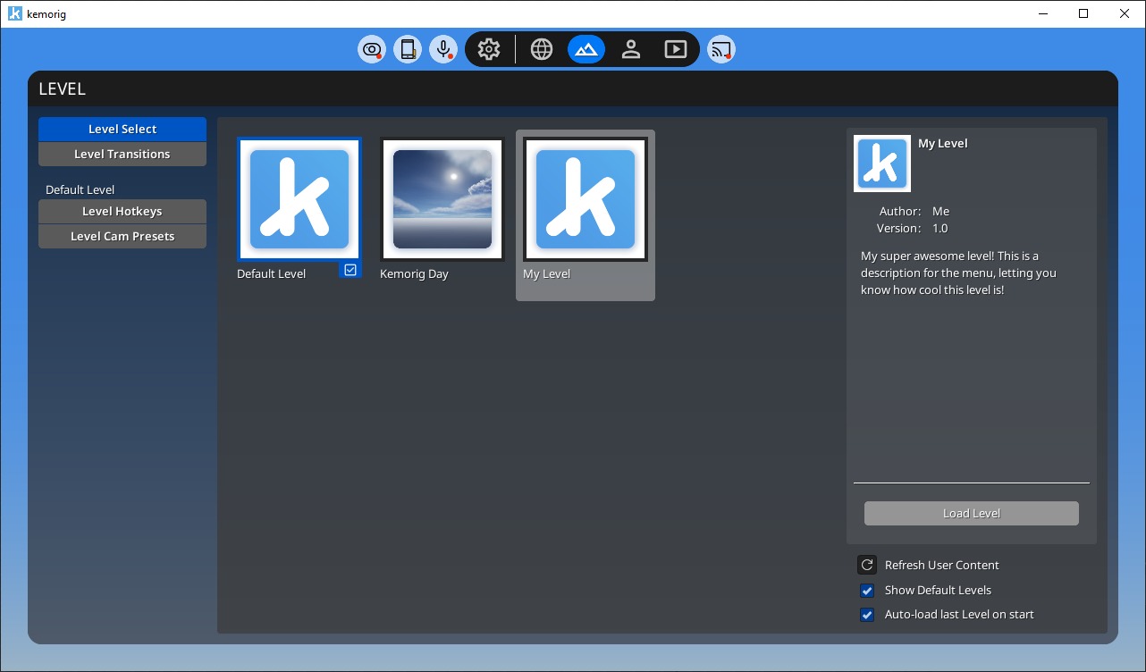 Congratulations, you now have a functional level that can be exported and selected in kemorig!
