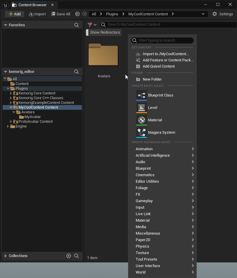 The workflow for creating avatars and levels for kemorig is a normal Unreal workflow for creating game content. With a few kemorig-specific classes on top.